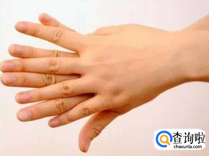 第3步:将一个手的手掌放在另一个手的手背上,和步骤二一样十指交叉。然后相互揉搓。做完了之后,换下一个手。第4步:两只手互相扣在一起,就像古代行礼的手势一样,相互的揉搓。