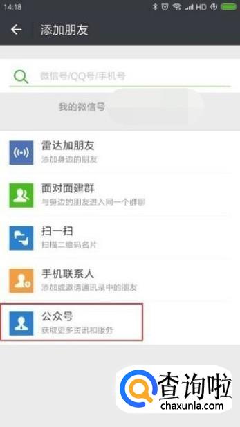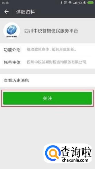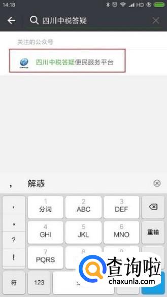 首先,点击微信右上角【+】,选择【添加朋友】,再点击【公众号】,然后在对话框输入“四川中税答疑”