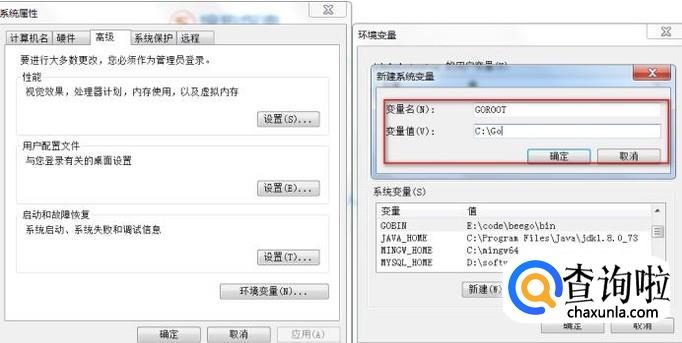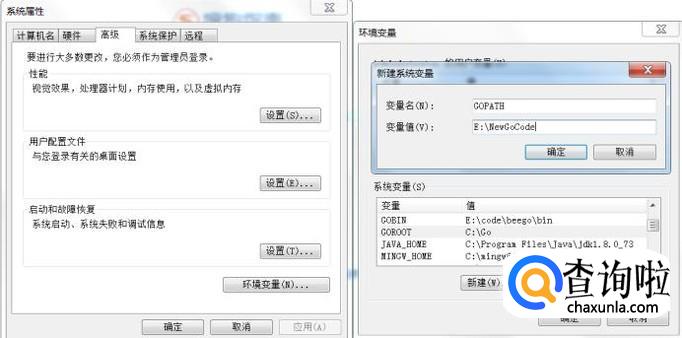 输入如下内容,其中第二项是之前安装的时候填写的go安装目录.然后点击确定