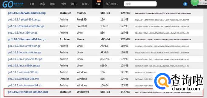 首先打开go语言中文网https://studygolang.com/dl下载中心,找到windows下的go语言安装包,这里会列出所有的go安装包,我们选择较为稳定的1.10.3版本