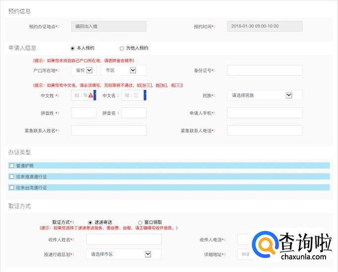 点击同意后下方会弹出内容,按照要求填写后,点击确认提交即可。有星号的编辑框都必须填写的,港澳通行证办好后可以选择是自取还是快递,自取不收费,快递的话一般是18元。