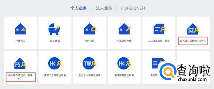 进入官网后,鼠标往下拉,你会看到“出入境办证预约”,根据你是深户或者非深户点击进入相应的网页。