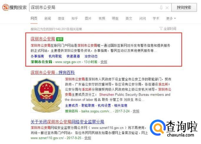 网上搜索“深圳市公安局”,出来的第一个结果就是,鼠标点击进入深圳市公安局官网。