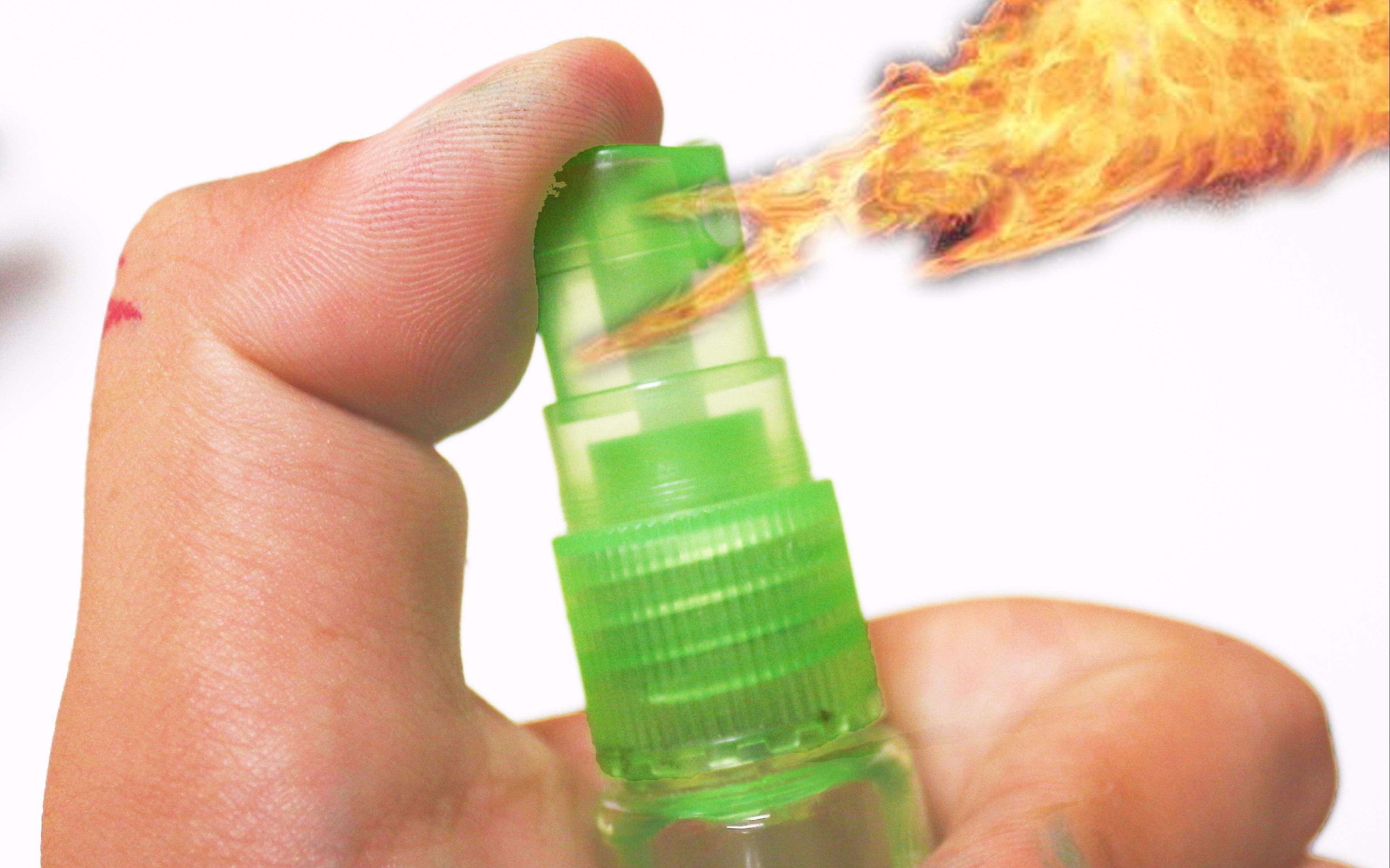 2010年有一个花露水烧伤的案例。当时北京台有报道,而且做了实验。实验前半部分比较弱:把花露水倒在易拉罐倒过来的凹形槽里点着,当然是可以烧的。