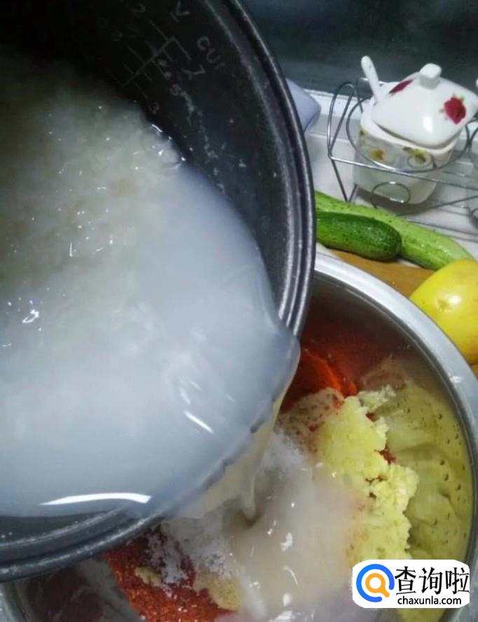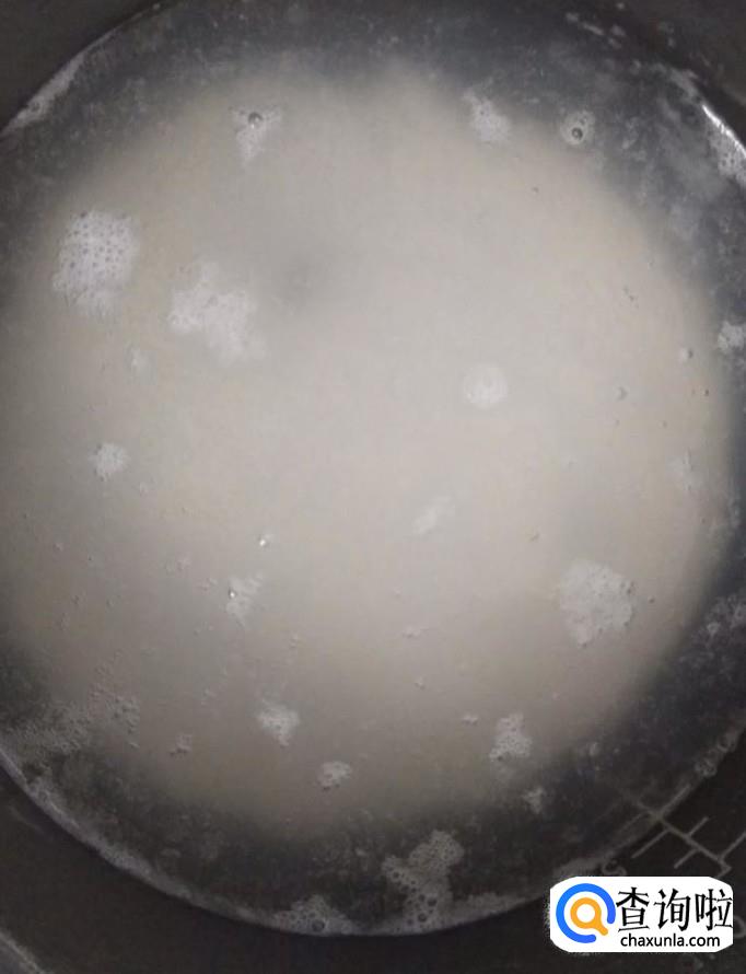 然后我们将糯米放入锅中,加入适量的水煮至汤汁粘稠备用。