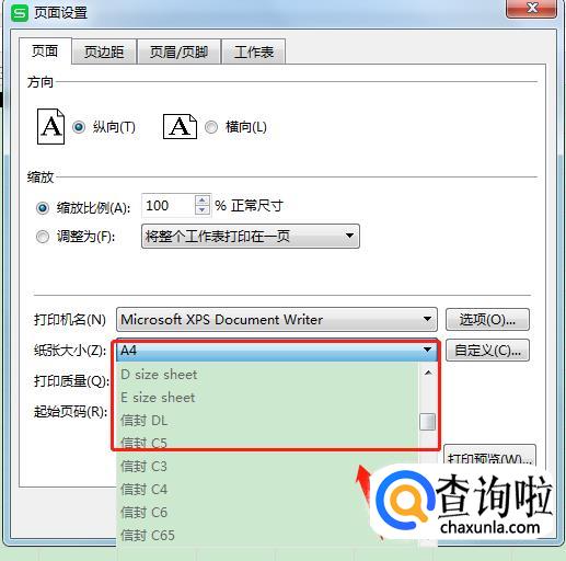 在弹出的下拉菜单中选择需要的纸张大小。如果想要比较大的文字,就尽量选择打印机能承受的最大范围的纸张选项。