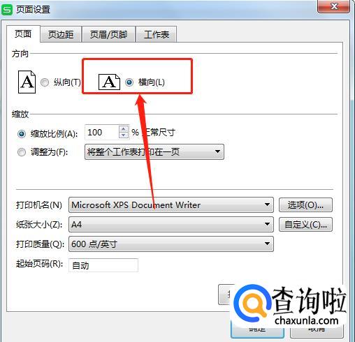 如果设置后表格还是无法打印,可以改变纸张方向,设置为“横向”的方式。