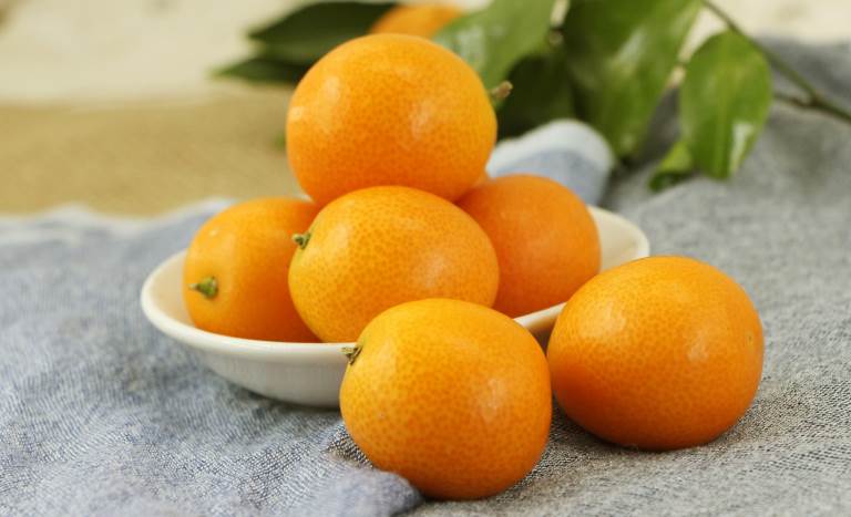 清洗后直接开吃。金桔不仅美观,其果实含有丰富的维生素C、金桔甙等成分,对维护心血管功能,防止血管硬化、高血压等疾病有一定的作用。
