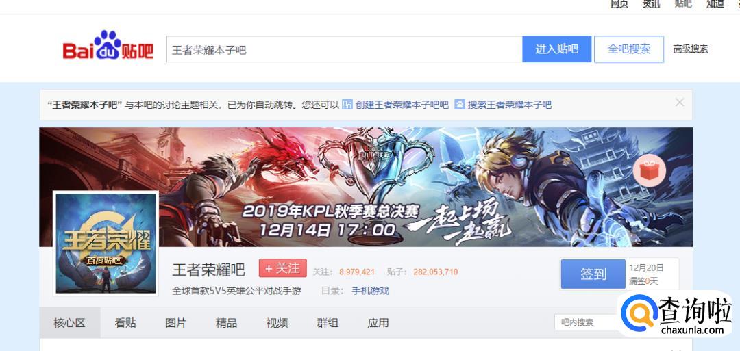 之后我们会直接跳转到“王者荣耀吧”中。