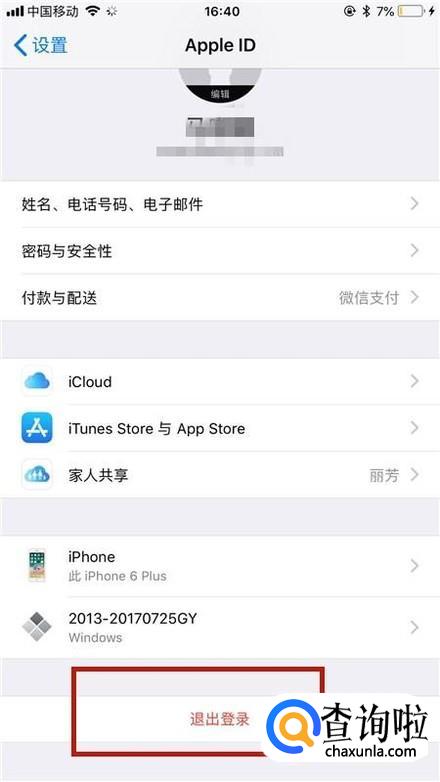 接着点击退出登录,如下图所示。
