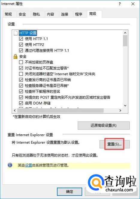 弹出的界面,我们点击重置;