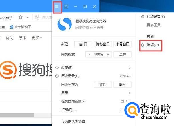首先,我们打开我们电脑上面的浏览器,然后我们点击图示中的按钮,弹出的界面,我们点击选项;