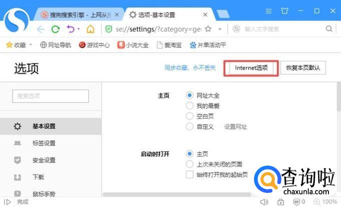 弹出的界面,我们点击Internet选项;