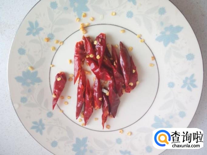 红干椒斜刀切成半,切好葱,姜,蒜,备用。