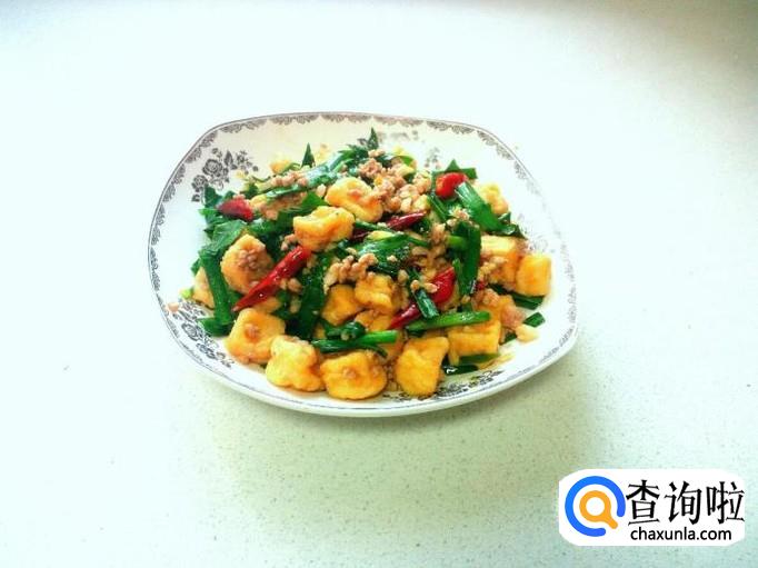 豆泡是一种油炸的豆制品,经汤煮后,味道特别鲜美。用豆泡和肉末一起同炒,放入水,用汤汁稍炖一会,再加入韭菜提鲜,风味独特,鲜香味美,是一道可口的家常下饭菜。下面介绍一下做法。