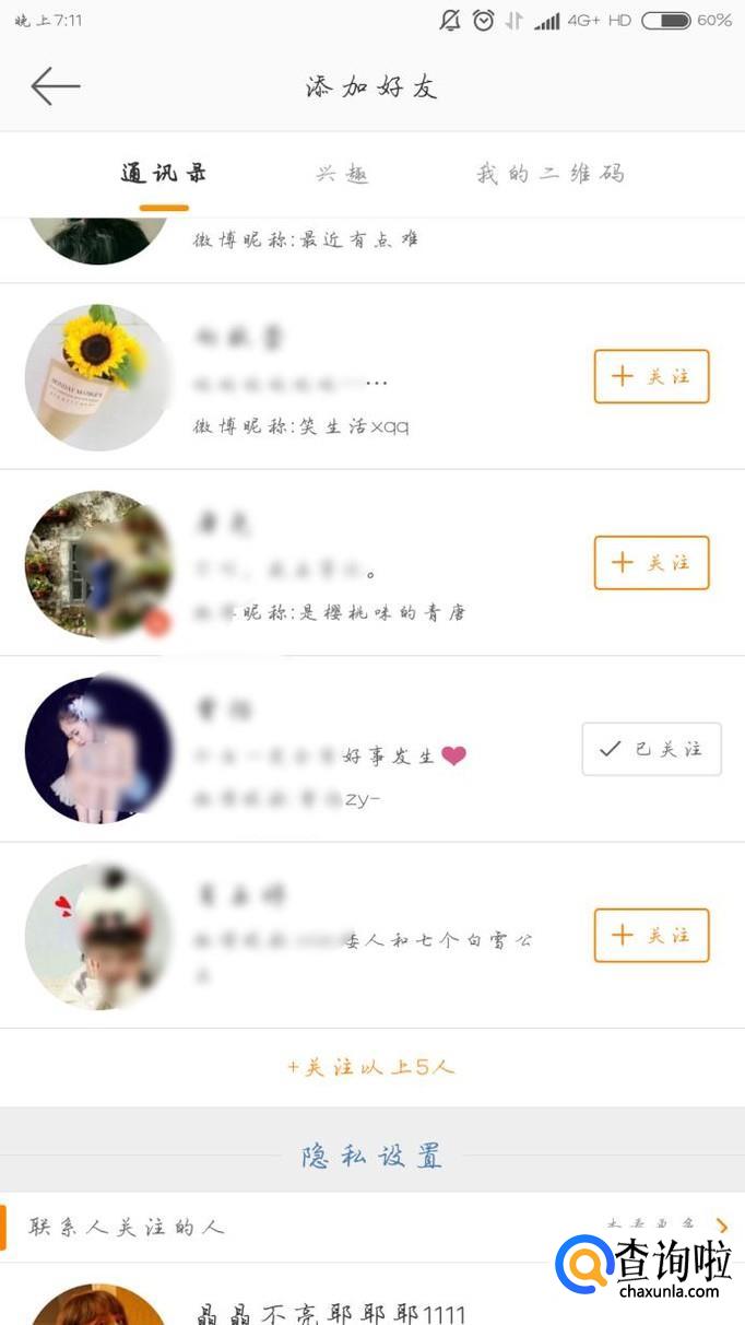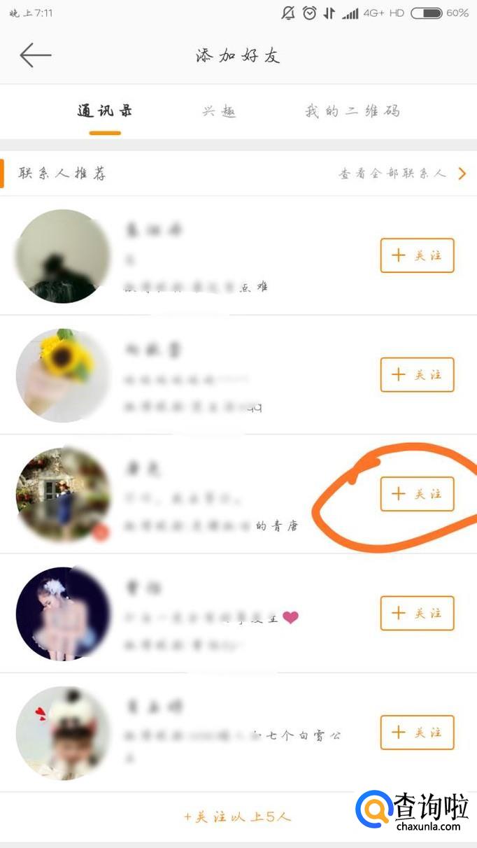 点击你想要添加的人后面的“关注”,然后就添加成功了,具体如下图所示