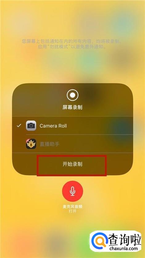 接着点击开始录屏,如下图所示。