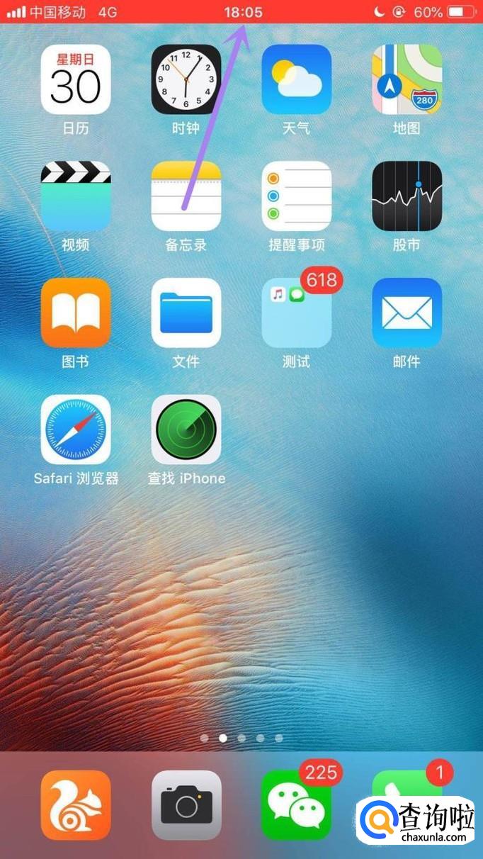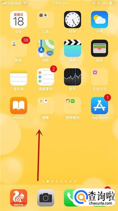 首先将我们苹果手机的主界面往上滑动,如下图所示。