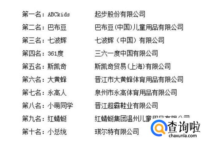 2017年度中国童鞋十大品牌排行榜已经出来了,排在第一名的是:ABCkids,第二名的是:巴布豆,剩下的请看下图。