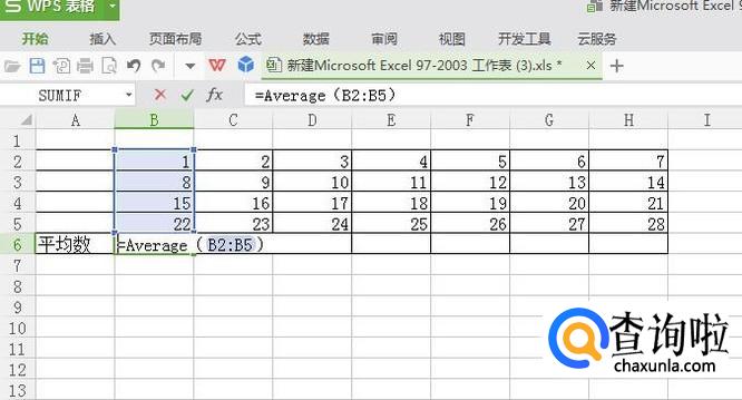 然后在表格当中输入一下要求平均数的内容,如下图所示。