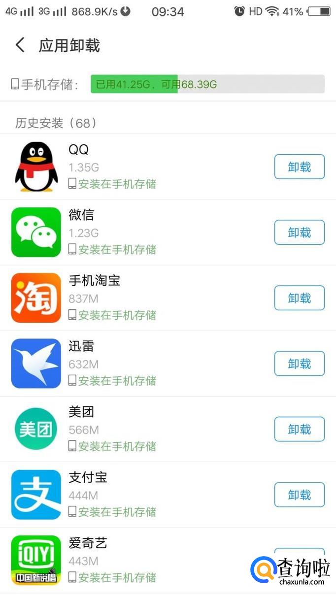 卸载不常用的软件。有些软件安装后几乎没有进行使用。可以将它们卸载,为手机腾出很多存储空间。