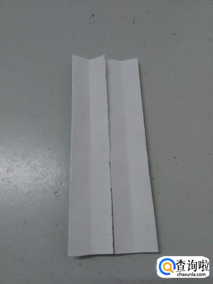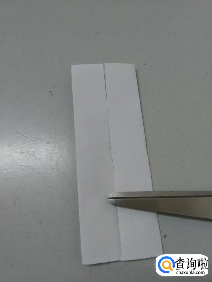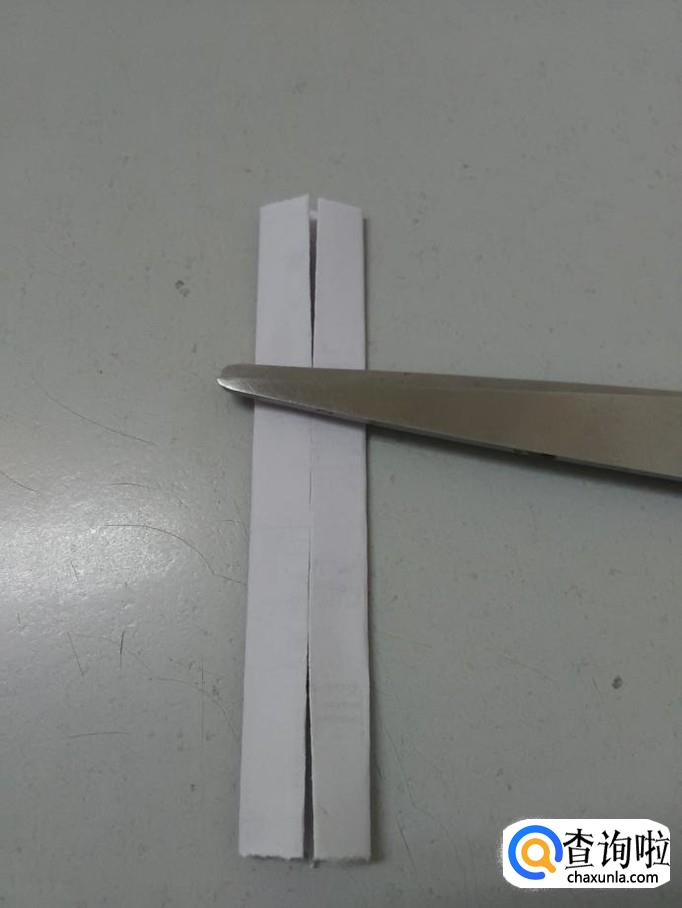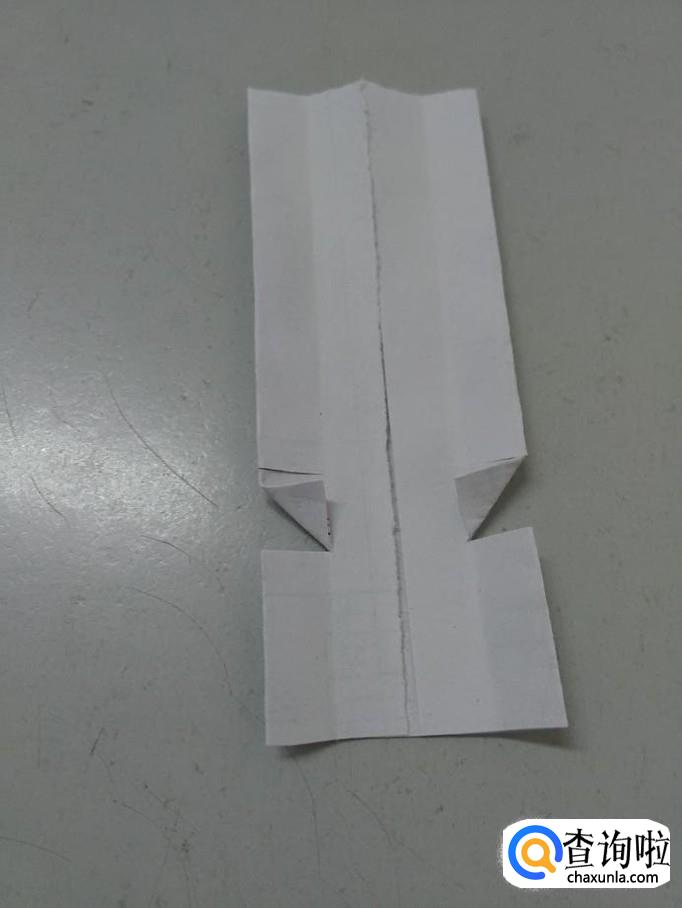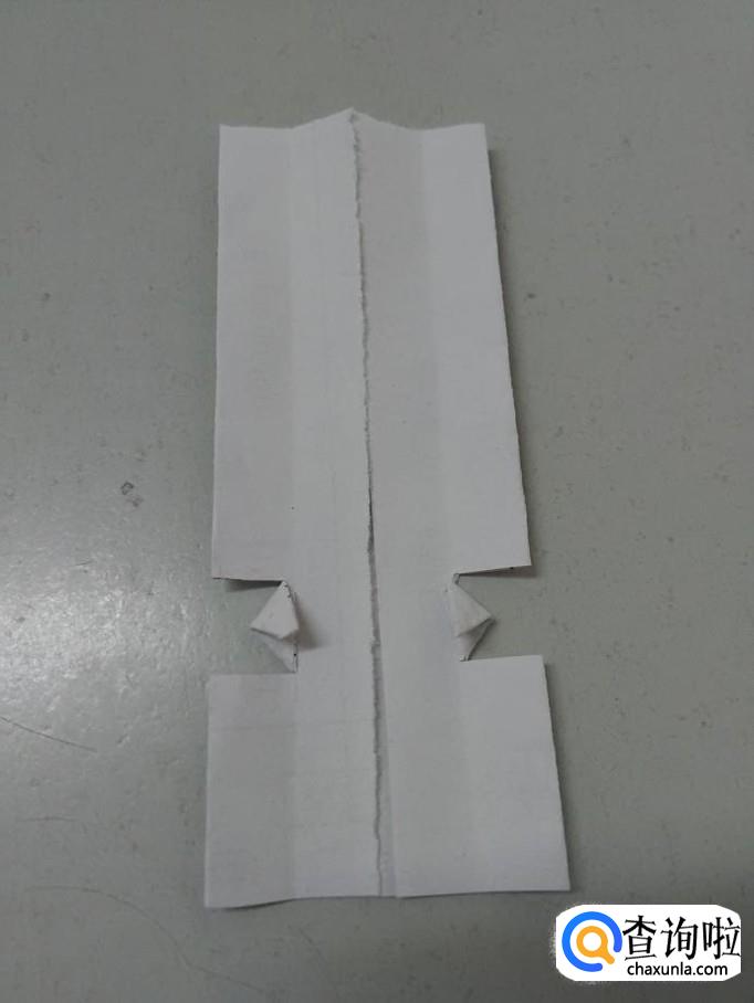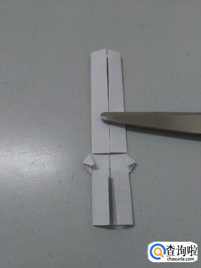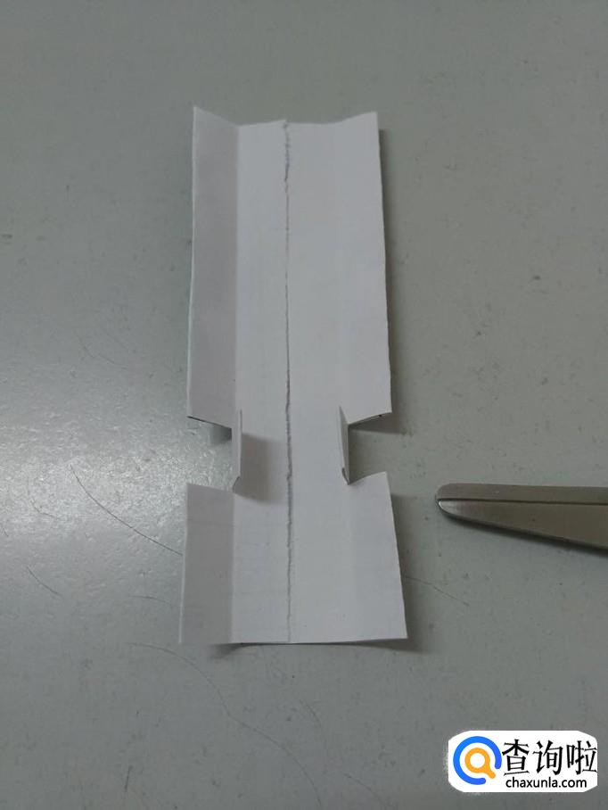 把第二次折的打开,用剪刀在下方剪开两个小口,两个小口呈正方形。