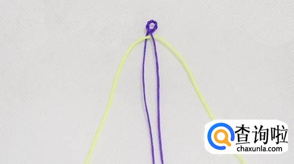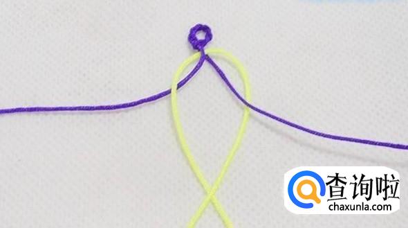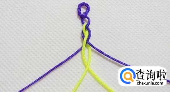 将紫色线收紧,黄色线交叉(结)。