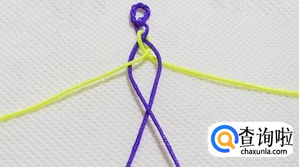 紫色线打个交叉(结)。
