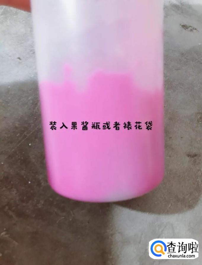 接着把面糊装入果酱瓶或者是裱花袋,如下图所示。