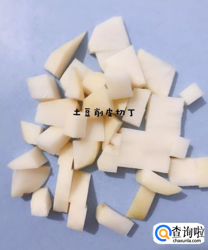 然后把土豆去皮切成丁,如下图所示。