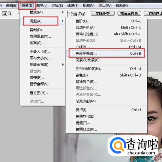 将通道全选,然后点【图象】里的【调整】【色彩平衡】。