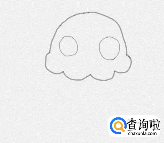 在水母的头部轮廓上面画出两个圆形作为水母的眼睛轮廓图形,如图所示: