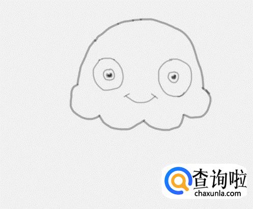 在水母的眼睛轮廓内再画出水母的眼珠,然后在画出水母的嘴巴,如图所示: