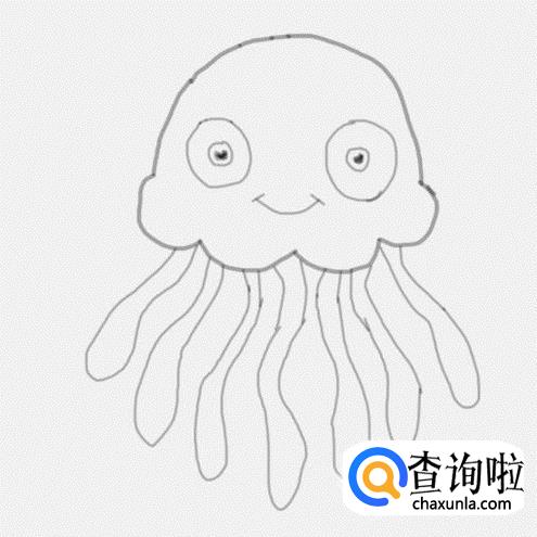 最后在水母的身体下面我们再画出水母的触角,这样海洋生物水母我们就画好了,如图所示: