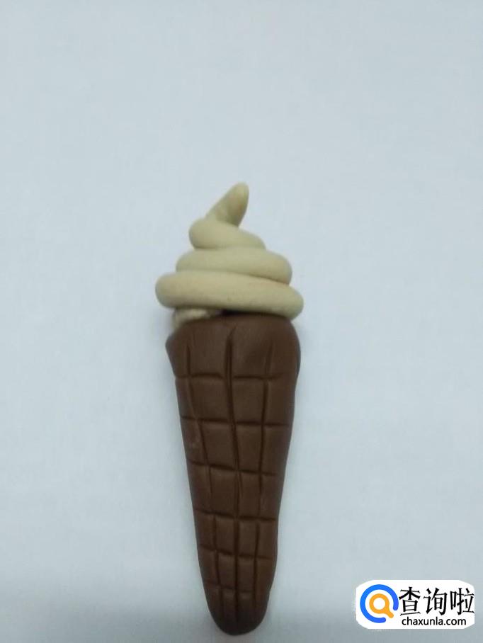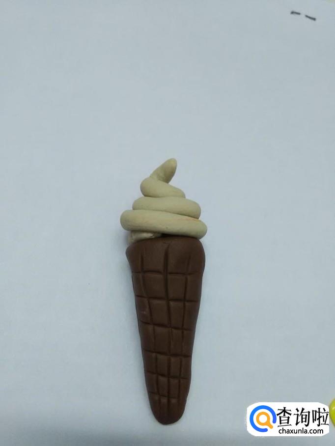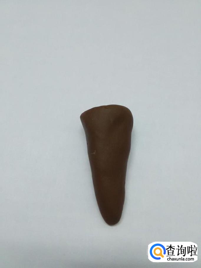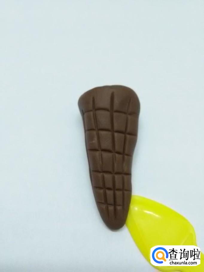 用棕色的搓一个圆锥体,当作冰淇淋下面脆脆的托。