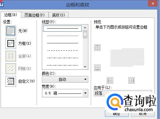 选择好之后,我们在“应用于”下的下拉框中选择“段落”。最后点击确定。