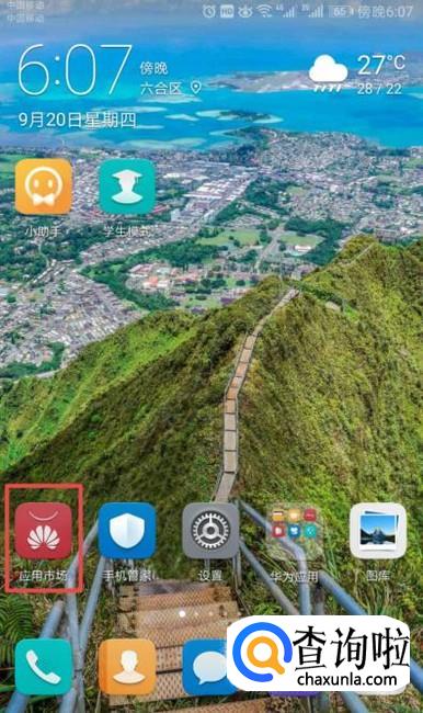 首先,我们打开我们的手机,然后我们点击应用市场;