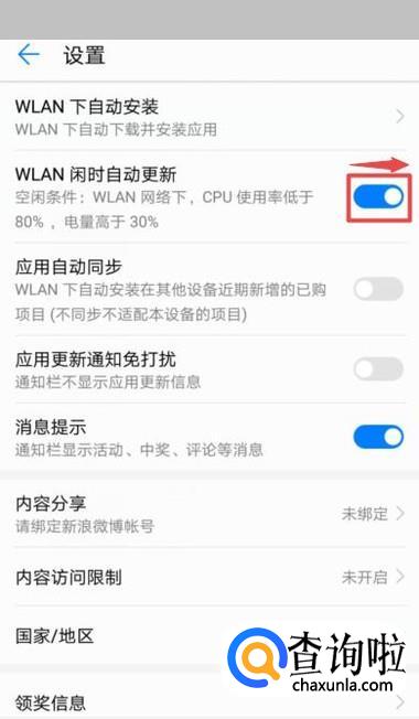 弹出的界面,我们将WLAN闲时自动更新的开关向右滑动打开就可以了,这样我们就设置好了,还是比较简单的,相信大家现在都会了。