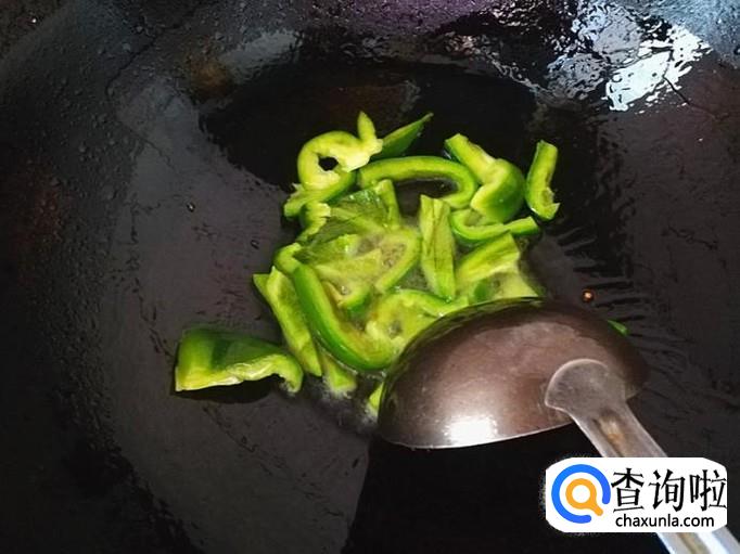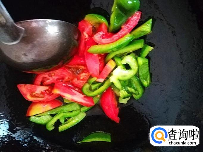 上炒菜锅,加入适量的植物油烧热,倒入准备好的西红柿和青椒翻炒几下。