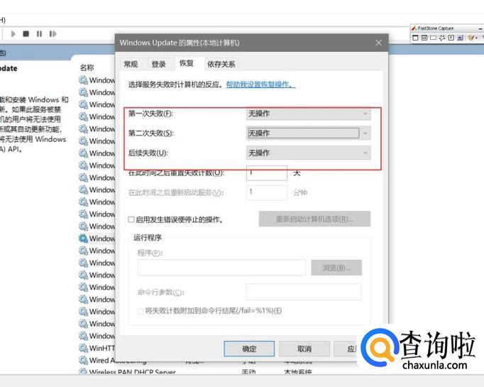 点击”恢复“,在第一次失败、第二次失败、第三次失败都选择“无操作”。保存即可,谢谢观看