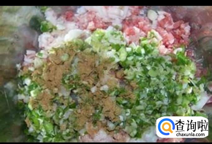 我们将新鲜的肉剁成肉馅儿,向其中加入葱姜蒜,豆瓣酱,花椒面,酱油,淀粉,鸡蛋,然后顺一个方向搅拌均匀,做成饺子馅儿