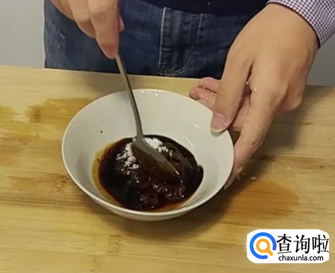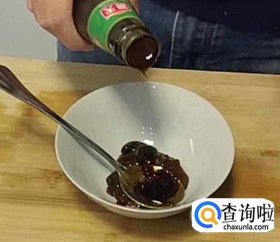 加入一勺豆瓣酱,适量的蚝油,酱油,适量的盐和糖,搅拌均匀,备用。