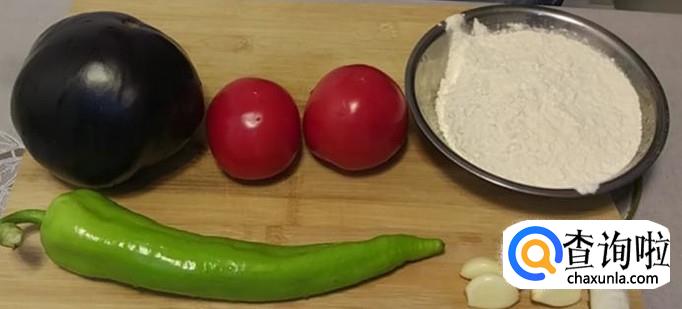 备好必须的材料,茄子一个,西红柿两个,尖椒一个,适量的淀粉,切好的葱姜蒜