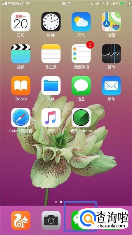 如下图,点击手机桌面中的微信。