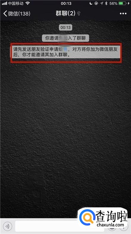 当群聊创建成功以后,如果显示要你添加对方为好友,那么说明这个好友已经拉黑或者是删除了你了。