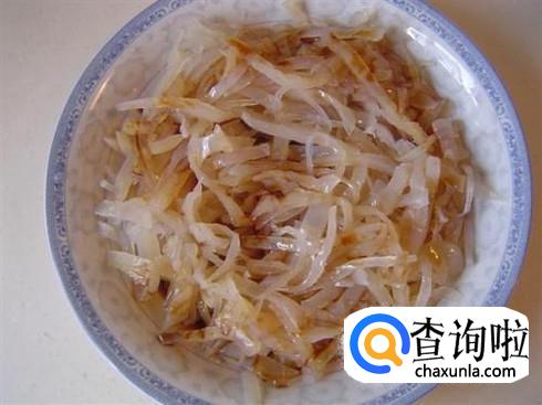 首先把海蜇皮放入清水中浸泡个一到两小时,直至泡开即可