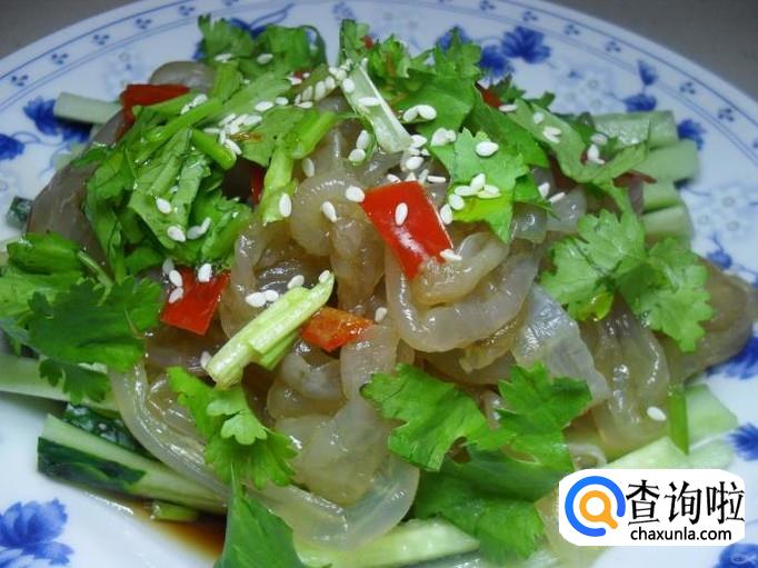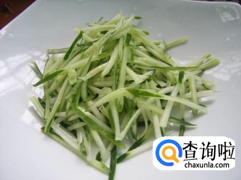 最后把黄瓜丝放入海蜇皮中,放入适量的辣椒碎,香菜末拌匀即可