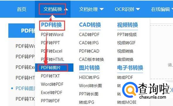 进入界面后,点击“文档转换”,在“PDF转换”选项中找到“PDF转图片”这个按钮,进入。