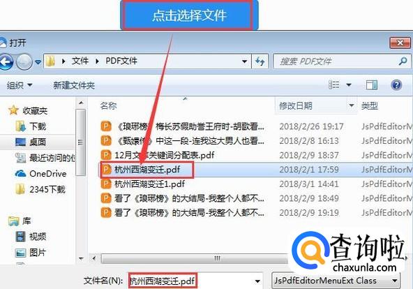 然后点击界面上的“点击选择文件”,在新弹出文件夹窗口选择PDF文件添加即可。