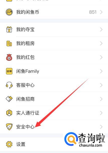 在个人界面中下划,找到并点击【安全中心】选项,如图所示。